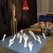 instalacja, gips, czarne płótno, wnętrze sali wystawowej. Autor: Janina Jeleńska-Papp