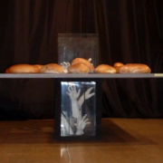 aranżacja, gips, drewno, chleb, 1983 aranżacja, gips, szkło, drewno, chleb, 1983